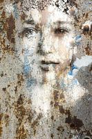 PRISTINE is een mixed art portret van een meisje en een afbladderende, roestige muur. De onschuld en ongereptheid van het portret staan in sterk contrast met de oude verwardheid van de muur. Je kunt de textuur bijna voelen door dit werk heen.