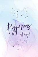 Wordt echt gezellig en ontspan thuis. PYJAMAS ALL DAY. PYJAMA'S DE HELE DAG. Yippy! Minimalistische typografie met een vleugje felle kleur maakt je dag zoet.