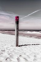 Tijdens een wandeling viel mijn oog op deze paal op het strand. Overgeleverd aan de weersinvloeden stond hij daar als een baken die de ons de weg wees over het strand