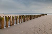 De paalhoofden die op het strand staan ter bescherming tegen de zee. Vroeg in de ochtend als er nog niemand op het strand is.