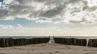 De paalhoofden die op het strand staan bij Vlissingen Zeeland staan er ter bescherming tegen de zee. Het zicht op de Noordzee achter de palen geven een weids gevoel.