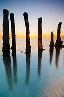 In deze foto heb ik paaltjes vanuit een laagstandpunt met een opkomend zonnetje vastgelegd.