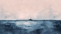 Dit digitale aquarelverfschilderij toont een stel dat wegroeit op een kalme zee bij zonsondergang en een gevoel van vrede en sereniteit uitstraalt. De zachte kleuren van de zonsondergang, van warme oranje tinten tot delicate roze en paarse tinten, worden weerspiegeld in het kalme water en creëren een harmonieuze en rustgevende sfeer. De…