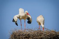 Ooievaars bereiden het nest voor op de komst van de jonge vogels