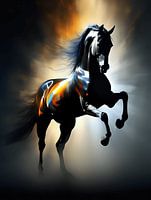 Hoe leuk is het dat jonge paarden, de wereld proberen te imponeren! Deze jonge zwarte hengst probeert indruk te wekken, met zijn uitdagende en sierlijke verschijning.