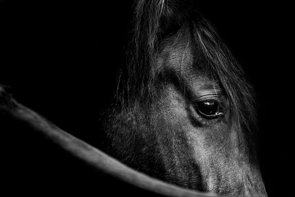 "Fluisterende Schaduwen" is een meesterlijke fine art fotografie die het mysterieuze en introspectieve karakter van een paard uitbeeldt. Gehuld in schaduw, met slechts een glimp van licht dat het oog en de contouren van de manen onthult, nodigt het beeld uit tot contemplatie. De subtiele nuances en het diepe zwart creëren een intieme sfeer die de stilte van het onderwerp weerspiegelt. Dit beeld zou niet misstaan in een galerie en voegt een element van stille kracht en elegantie toe aan elke ruimte waar het tentoongesteld wordt.