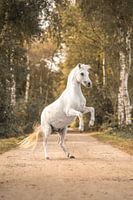 Deze betoverende kleine witte Welsh pony te midden van een natuurlijke omgeving. De eenvoud en elegantie van deze pony worden vastgelegd in dit beeld, en de connectie met de natuur is duidelijk voelbaar. Het is een moment van sereniteit en harmonie tussen dier en omgeving.