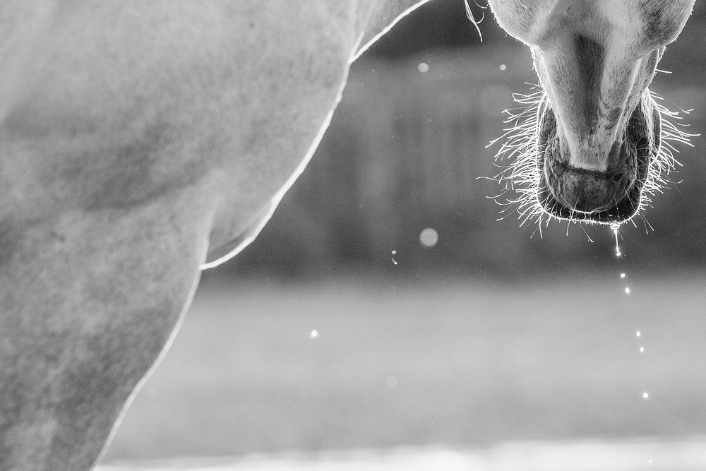 schimmel merrie, paard, zwart wit, zonsondergang, dromerig, licht, elegantie, rust, schoonheid, verstilling, sereniteit, verwondering.