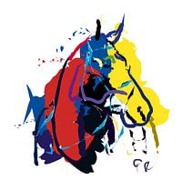 Modern kleurrijk portret van een paard. Minimalistisch en abstract kunstwerk van een stoer paard.