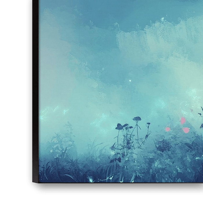 Deze serene illustratie toont een wit paard in een betoverend nachtlandschap, badend in het zachte licht van een volle maan. Het dier staat kalm tussen bloeiende bloemen, omgeven door nevelige blauwtinten en paarse gloed die samensmelten met de fonkelende sterrenhemel. De dromerige sfeer roept rust en contemplatie op, ideaal voor interieurs die verlangen naar een vleugje poëzie en natuurlijke elegantie. Een perfect kunstwerk voor liefhebbers van paarden, maanlicht en magische nachttaferelen.
