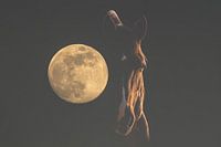 In deze betoverende nachtcompositie verschijnt een paard half verlicht door de volle maan, die groots en helder naast zijn gezicht zweeft. Het contrast tussen het warme maanlicht en de diepe schaduwen creëert een mysterieuze sfeer waarin rust, kracht en magie samenkomen. De intense blik van het paard en de perfect ronde maan versterken het gevoel van verbondenheid tussen dier en kosmos. Dit kunstwerk roept een gevoel op van stilte, mystiek en innerlijke reflectie — een krachtig statement in elke ruimte met een liefde voor symboliek en sfeer.