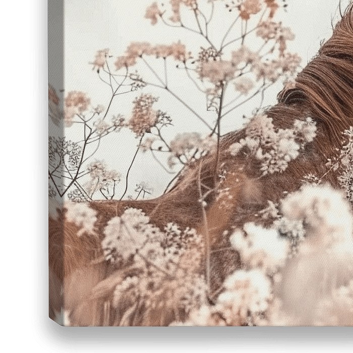Deze prachtige fine art foto vangt de majestueuze schoonheid van een paard te midden van een weelderig landschap van roze bloemen. Met een serene uitstraling staat het paard trots in het midden van een zee van bloemen, elk blaadje in harmonie met zijn natuurlijke gratie.