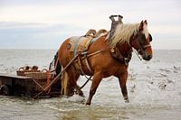Paard in het water te Oostduinkerke (paardenvisserij)