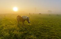 Tijdens een mooie vroege mistige ochtend kwam dit paard naar mij toegelopen tijdens zonsopkomst.