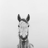 Dit indrukwekkende zwart-wit portret van een paard legt de nobele gratie en krachtige aanwezigheid van het dier perfect vast. De gedetailleerde weergave van de glanzende vacht en expressieve ogen geven de foto een tijdloze schoonheid. Ideaal voor kunstliefhebbers en paardenliefhebbers die een elegant tintje aan hun huis willen geven.