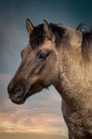 Portret foto van een Konik paard in natuurgebied in de namiddag