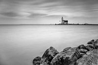 De bekende vuurtoren het "het Paard van Marken" dit maal in zwart wit en met een lange sluitertijd gemaakt.