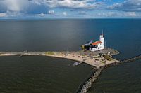 Het paard van Marken vuurtoren gelegen aan het IJsselmeer van hoogte gefotografeerd