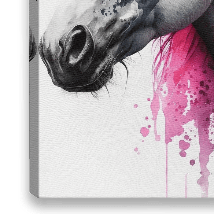 Deze poster heeft een gedetailleerde zwart-wit tekening van een paard met een opvallende roze zonnebril. De afbeelding heeft een roze flair en is voorzien van subtiele waterverfdruppels in roze en rode tinten. Helder, gedurfd en kleurrijk, deze kunstdruk brengt een funky splash van kleur in elke kamer. Het leuke dierenmotief in een cool…