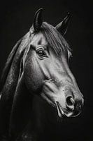 Een majestueus paard met diepe, expressieve ogen en een glanzende vacht maakt elke muur af. De monochrome elegantie straalt rust en gratie uit, perfect voor een woonkamer waar nabijheid tot de natuur en tijdloze stijl harmoniëren. De benadrukte blik van het dier trekt ieders aandacht en vertelt verhalen vol vrijheid.