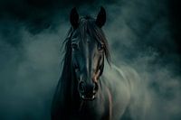 Te midden van een mystieke mist straalt het majestueuze zwarte paard kracht en gratie uit. Het contrast tussen de donkere vacht en de mysterieuze omgeving trekt onmiddellijk de aandacht. Dit artistieke motief geeft de woonkamer een harmonieuze maar krachtige sfeer die uitnodigt om te dromen en te blijven hangen.