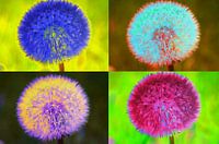 Een kleurenspel met het vruchtlichaam van de paardenbloem