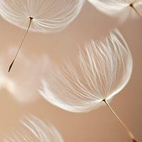 Delicate, vederlichte structuren zweven zachtjes door de lucht alsof ze gevangen zitten in een droom. Hun glinsterende wit straalt pure gratie uit, terwijl fijne haartjes zich ontvouwen in het licht. Een subtiele melodie van breekbaarheid en schoonheid die de ziel streelt en de kijker in een vredige stemming brengt.