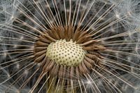 Macrofoto van de resterende paardenbloemzaden op een gedeeltelijk kaal bloemhoofdje