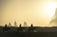 Hier lopen net een aantal ruiters op paarden voorbij. Net een scène uit The Game of Thrones
