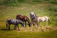 Paarden in een weiland op het eiland Tholen, Zeeland.