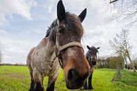 paard in close up staand in het weiland