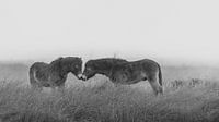 Koop dit landschapskunstwerk Paarden in de mist (BW) van Martzen Fotografie op canvas, aluminium dibond, (ingelijste) fotoprint, behang en ArtFrame, op maat geprint in Fine-Art kwaliteit.