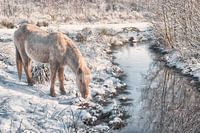 Paarden in de sneeuw natuurgebied de Pannenhoef in Noord-Brabant