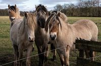 Paarden kijken nieuwsgierig naar mij als wandelaar in het natuurgebied Balloërveld in de provincie Drenthe, Nederland.