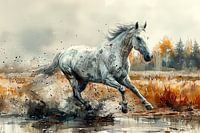 Een schets van een paard toont de majestueuze gratie en kracht van dit prachtige dier. De scherpe lijnen en schetsmatige details vangen de essentie van zijn gestalte, terwijl de contouren zijn gespierde lichaam en elegante houding benadrukken. De schets kan het paard tonen in een dynamische pose, met wuivende manen en een trotse blik in zijn ogen. Achtergrondelementen kunnen subtiel worden toegevoegd om de scène te completeren, waarbij de focus ligt op het majestueuze paard en zijn verbinding met de natuurlijke omgeving. Deze schets belichaamt de tijdloze schoonheid en kracht van het paard en roept een gevoel van bewondering en verwondering op bij de beschouwer.