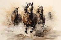 Paarden. Een bijzonder werk van paarden in aquarel, aardetinten. Kies zelf het formaat en materiaal en maak het werk helemaal passend voor jouw interieur.