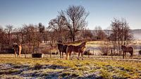 Paarden in een weiland in Höfke, een buurtschap dicht bij Mechelen in het Zuid-Limburgse Heuvelland