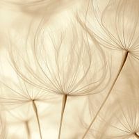Delicate, filigrane structuren ontvouwen zich als dromerige fluwelen wolken, hun zachte contouren schijnen door een gouden mist. Deze etherische creaties dansen in het licht alsof ze verhalen vertellen over vergankelijkheid en een nieuw begin. Een harmonieus samenspel van texturen en kleuren dat de zintuigen prikkelt en uitnodigt om te blijven hangen.
