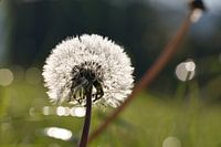 Pusteblume mit Bokeh auf einer Wiese. Filigrane Blume, im detailliert