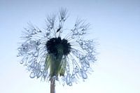 Een knop van de paardenbloem vol met zaadjes,gefotografeerd door Gert Hilbink in de vroege morgen met dauw op de zaadjes en in tegenlicht.