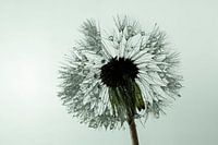 Een knop van de paardenbloem vol met zaadjes,gefotografeerd door Gert Hilbink in de vroege morgen met dauw op de zaadjes en in tegenlicht.