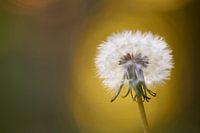 Pluizenbol van Paardenbloem met het gouden tegenlicht van een laagstaande zon.