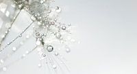 Kleine kristallen lichten op in de zon, de regen is gevallen. Pluisjes van de paardenbloem vullen zich met kleine ronde waterbolletjes. De ochtend lucht is nog helder en licht wanneer ik mijn camera pak en naar buiten ga. Macro foto's maken, kleine dingen groot maken en zichtbaar. De natuur in de tuin kan zo mooi zijn, daar hoef je echt niet ver voor weg, vooral als je alle kleine details kan ontdekken. Die morgen heb ik wel een stuk of dertig foto's gemaakt alleen van de pluisjes. Thuis op de computer ga ik alles bijlangs en kies deze uit, de mooiste door zijn helderheid en frisheid, de plaats van de druppels en de moderne grijze achtergrond. Hierdoor is dit werk te gebruiken in alle soorten kamers, van donker naar licht. Op canvas , maar ook erg mooi op acrylglas.
