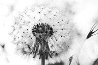 Een high key macro foto van een paardenbloem. Je ziet goed alle pluisjes en de bloem steekt mooi af tegen de witte achtergrond. De foto is gemaakt op het landgoed Marienwaerdt.