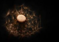 Eeen macrofoto van een paardenbloem met een zwart/blauwe achtergrond.