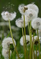 Paardenbloemen met wegwaaiende pluizen van Peter Bartelings