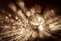 Dit is een paardenbloempluis beneveld met water en een druppel in het midden.