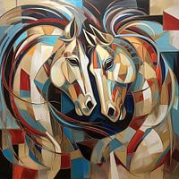 Details: paarden, abstract, modern, kunst, kleurrijk, canvas, decoratie, interieur, dieren, schilderij