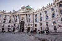 Een paardenkoets bij de Hofburg aan de Michaelerplatz in de historische binnenstad van Wenen.