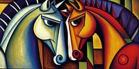 Paardenkracht is een kleurrijk digitaal schilderij in impressionistische stijl. De levendige kleuren en details van het werk prikkelen de zintuigen en brengen leven in elke kamer.